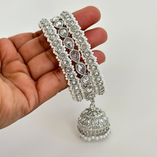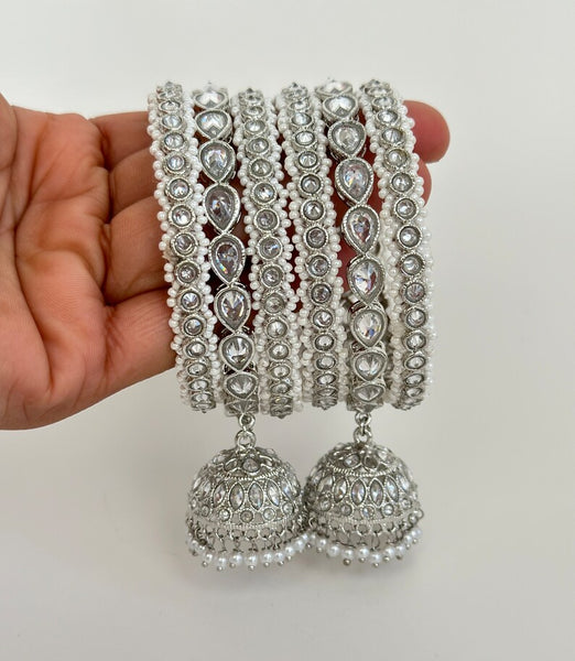 Bollywood Style Polki Kundan antique finish Bangles Set(3pc)/Polki Chuda set/Punjabi Pearl bangles Set/Bridal bangles/wedding jewelry/Chooda