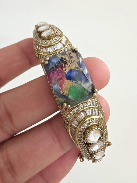 Fire Stone Victorian Moissanite Polki openable bracelets,Single Broad Bangle, bridesmaid gifts,Indian Pakistani Jewelry, Indian wedding,Gift