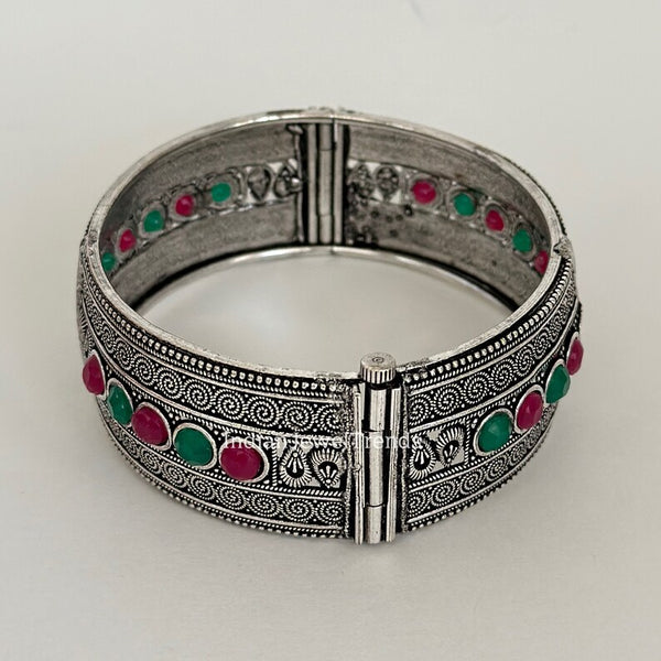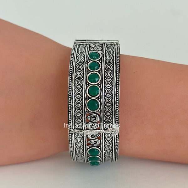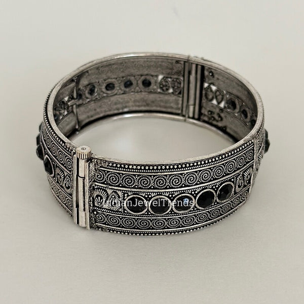 Oxidized Silver openable single Kada/Bracelet (1Pc)/German Silver/Boho/Tribal/Indian Jewelry/Pakistani/Oxidized Bangles/One size fit 2.4/2.6