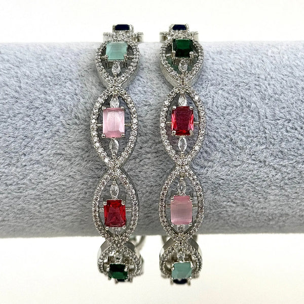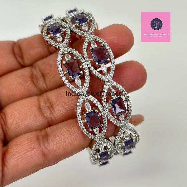 Set of 2 Purple/Multi Cz silver American Diamond bangles/CZ Bangles/silver Bracelet/Indian Bangles/Indian Pakistani wedding bridal jewelry