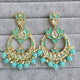 Aqua Blue Gold Kundan Tikka w/Earring Set/ Indian Bridal Maang Tikka /Teeka Tika Headpiece Handmade Pearl Jewelry For Women Bollywood