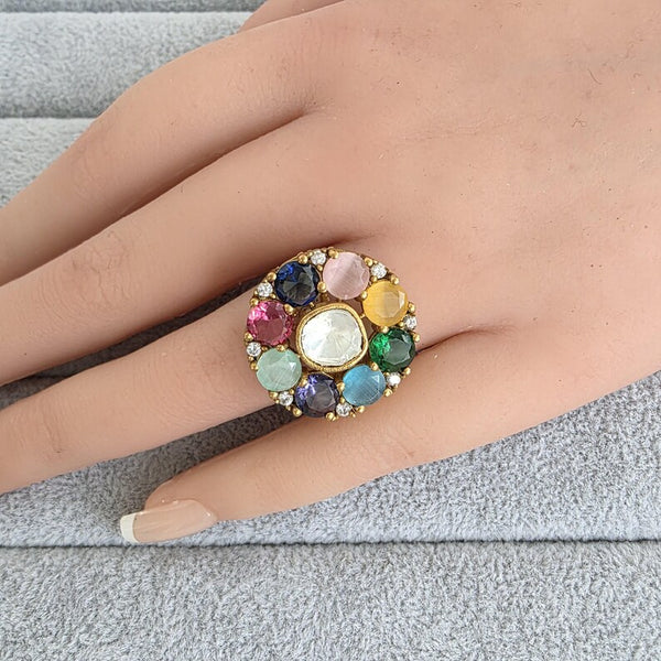 Fine Victorian Moissanite Polki Ring/Adjustable Ring/Indian Ring/Pakistani/Punjabi/Indian Jewelry/Bollywood/Statement ring, Cocktail Ring