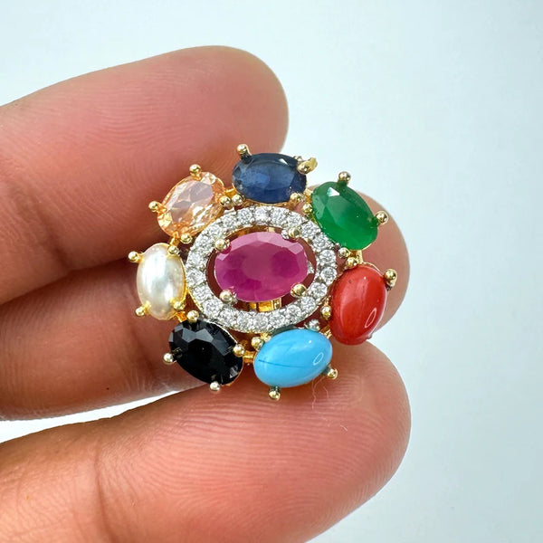 Navratan American Diamond Ring/Statement Ring/Cocktail Adjustable Ring/Indian Ring/Pakistani Jewelry/Indian/Bollywood Jewelry/Indian Wedding