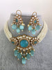 Aqua Blue Doublet Moissanite Pearl Kundan Necklace/Kundan Choker/Bollywood Jewelry/Indian wedding/Bridal jewelry/Indian Wedding/Pakistani