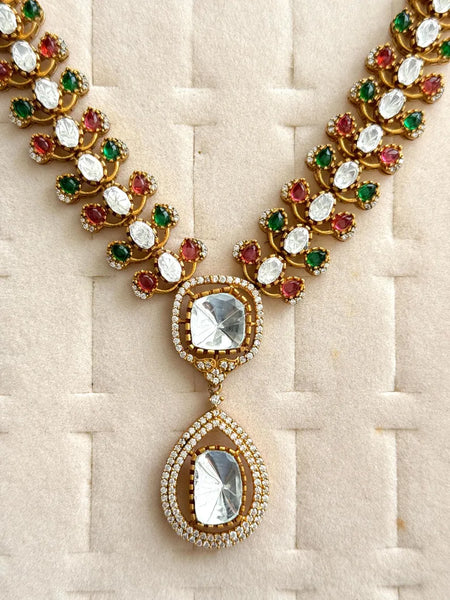 RubyGreen Victorian Moissanite Necklace, Semi-precious muti stones Pendant Necklace, Indian Bridal Jewelry, Bollywood Sabyasachi Necklace