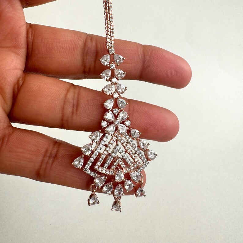 American Diamond Maang tikka/Indian Jewelry/ Indian Wedding Jewelry/ Pakistani Jewelry/ Jhoomer/ Matha patti/ Indian forehead jewelry