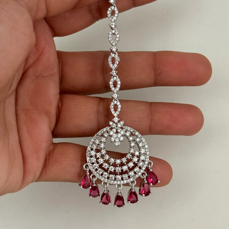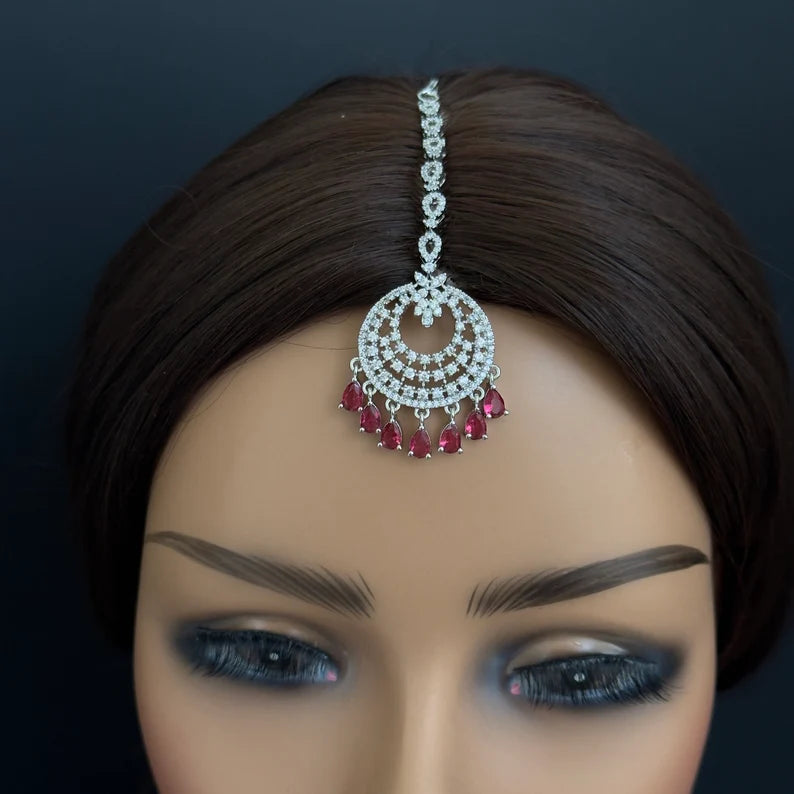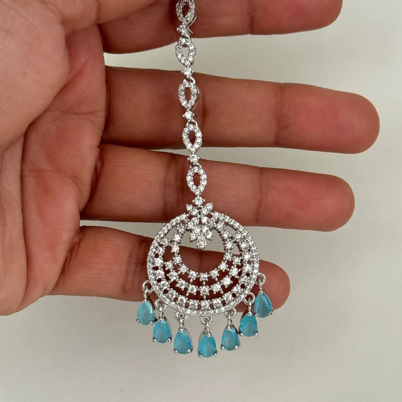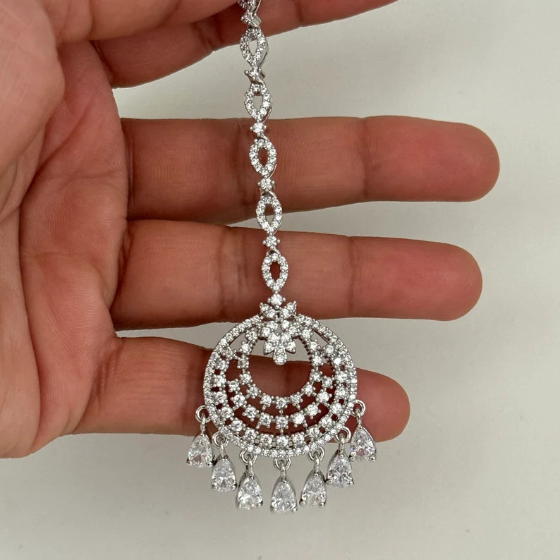 American Diamond Maang tikka/Indian Jewelry/ Indian Wedding Jewelry/ Pakistani Jewelry/ Jhoomer/ Matha patti/ Indian forehead jewelry